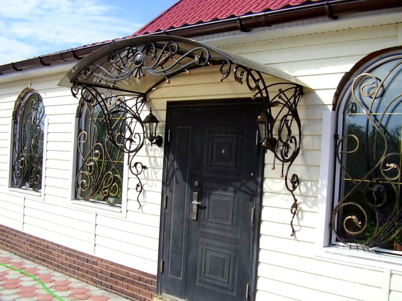 Крыльцо, безусловно, является лицом любого здания, очень важно, чтобы все части входной группы или козырька гармонично сочетались между собой, были красиво оформлены и естественно вписывались в окружающий ландшафт. Подобное изделие, выполненное из кованых элементов, рукой мастера будет очень презентабельным дополнением для вашего дома.