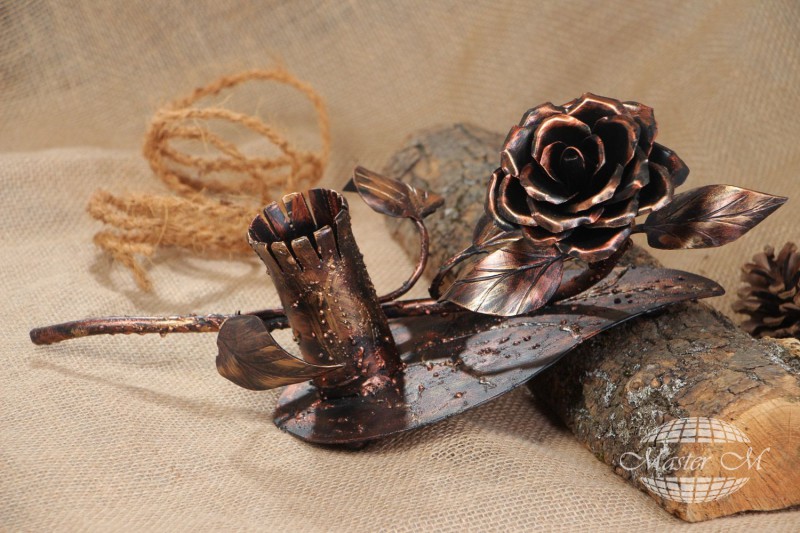 Кованые цветы сделанные рукой опытного кузнеца во все времена смотрелись восхитительно, порой они выглядят как живые, благодаря особой выразительности. Подобные элементы старинного декора и сегодня имеют огромный спрос у ценителей традиционных украшений. Всего лишь одна роза в интерьере привнесет в дом нотки таинственности и романтики, а утонченные любители изысков смогут оформить коваными цветами внешний вид калиток, ворот, беседок и других ландшафтных конструкций.