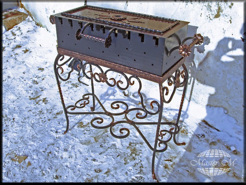 Имея в наличии мангал можно в любое время года приготовить изящное блюдо на углях под открытым небом. Подобные изделия могут быть классическим - сварным, но наиболее интересными конструкциями считаются кованые мангалы, которые нередко бывают стационарными и оснащаются крышей и прочими приспособлениями для удобства. Как правило, они изготавливаются под заказ с предоставлением эскиза или фото кузнецу для воплощения вашей уникальной задумки.